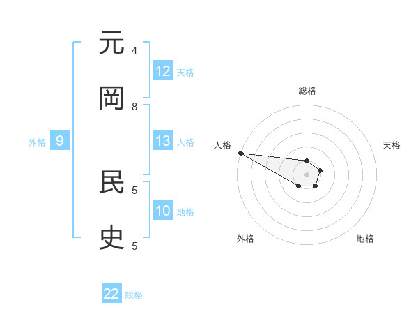 元岡 民史さんの総格は22画の1点!