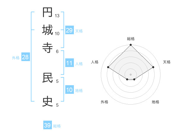 円城寺 民史さんの総格は39画の5点!