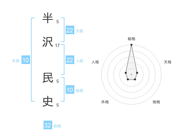 半沢 民史さんの総格は32画の5点!