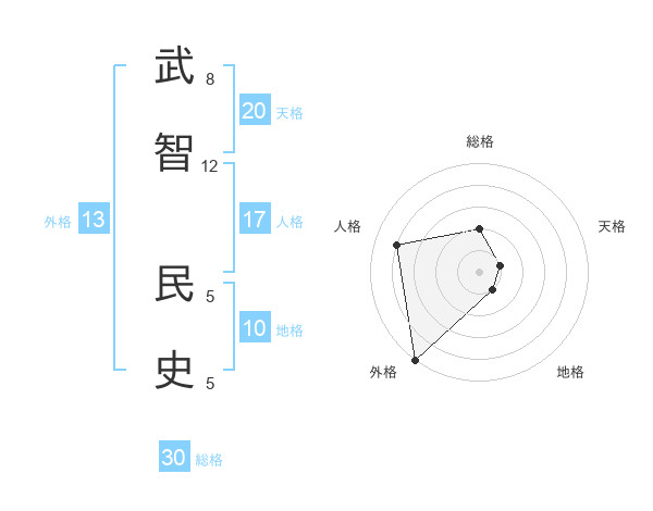 武智 民史さんの総格は30画の2点!