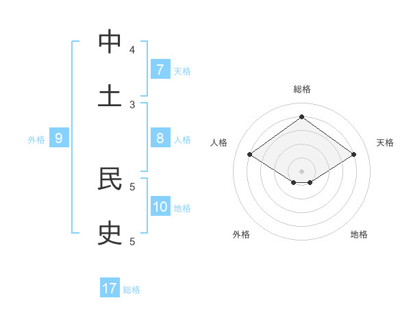 中土 民史さんの総格は17画の4点!