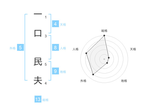 一口 民夫さんの総格は13画の5点!