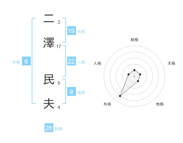 二澤 民夫さんの総格は28画の1点!
