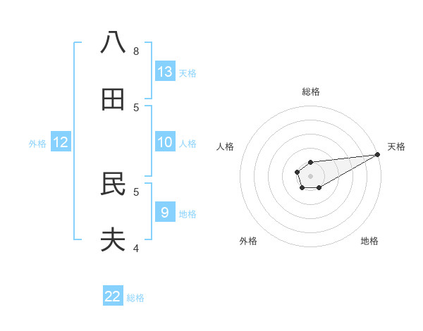八田 民夫さんの天格は13画の5点!
