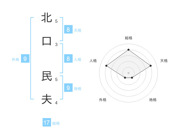 北口 民夫さんの天格は8画の4点!