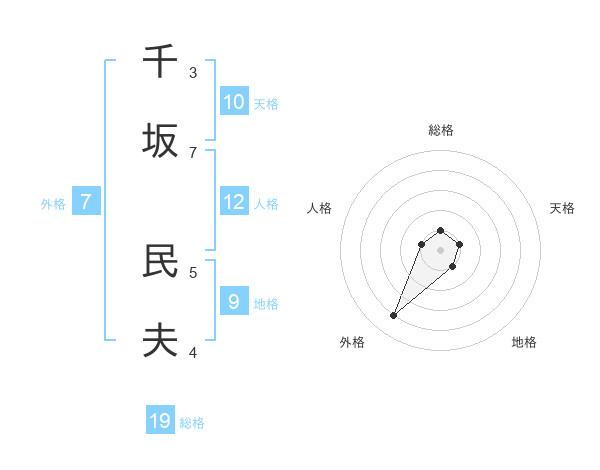 千坂 民夫さんの外格は7画の4点!