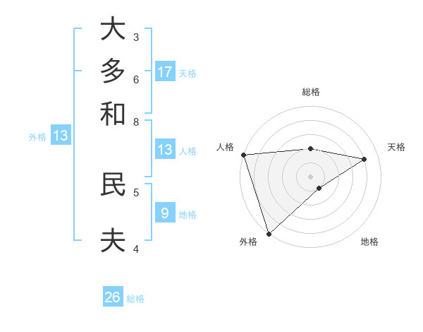 大多和 民夫さんを姓名の画数から五運を鑑定