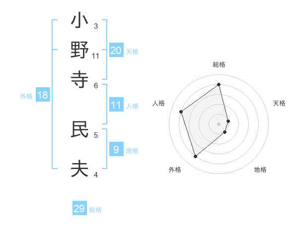小野寺 民夫さんを姓名の画数から五運を鑑定