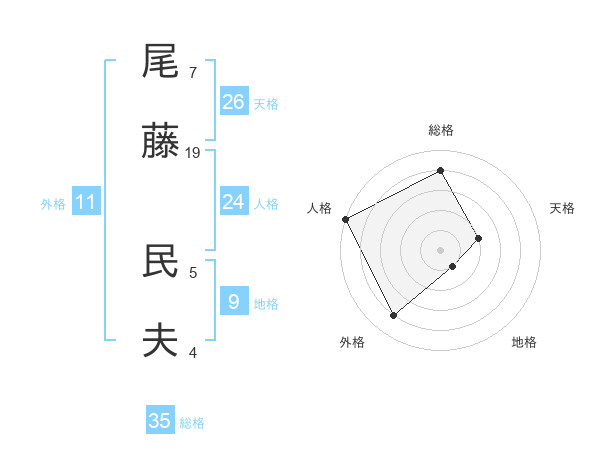 尾藤 民夫さんの総格は35画の4点!