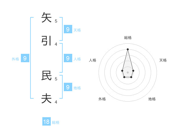 矢引 民夫さんを姓名の画数から五運を鑑定