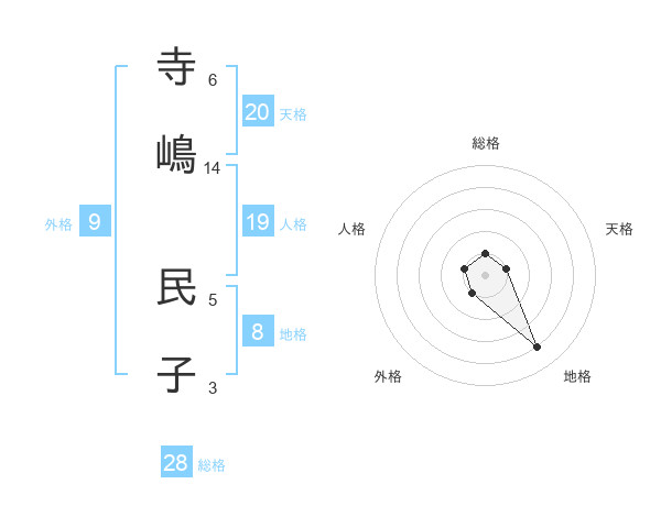 寺嶋 民子さんを姓名の画数から五運を鑑定