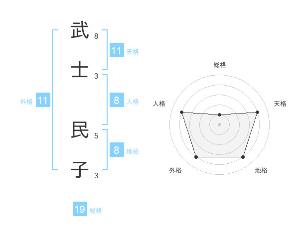 武士 民子さんの天格は11画の4点!