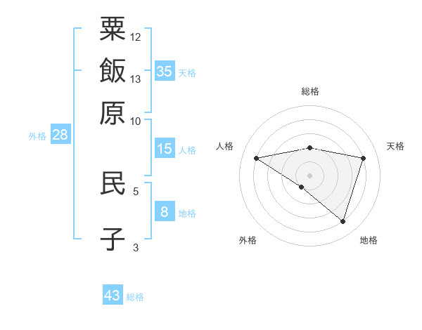 粟飯原 民子さんを姓名の画数から五運を鑑定