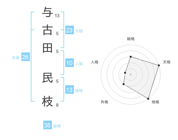 与古田 民枝さんを姓名の画数から五運を鑑定