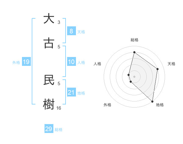 大古 民樹さんの天格は8画の4点!