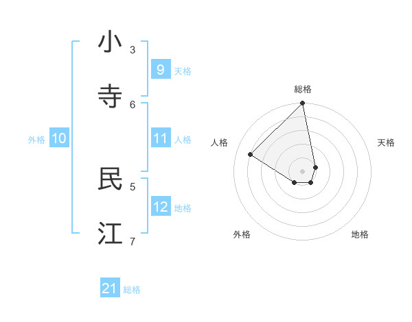 小寺 民江さんの総格は21画の5点!