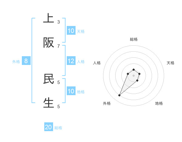 上阪 民生さんの総格は20画の1点!