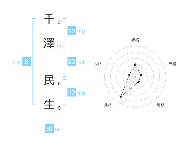 千澤 民生さんの天格は20画の1点!
