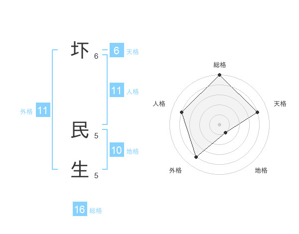 圷 民生さんの総格は16画の5点!