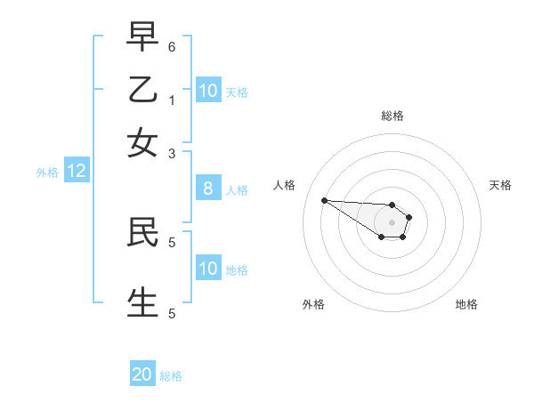早乙女 民生さんを姓名の画数から五運を鑑定