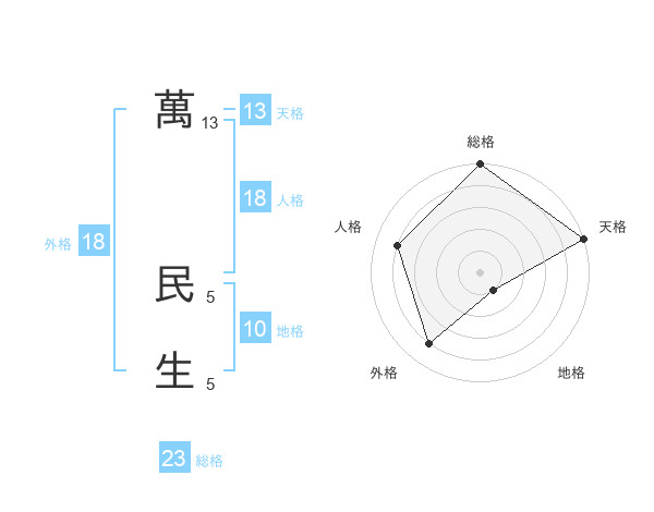 萬 民生さんの総格は23画の5点!
