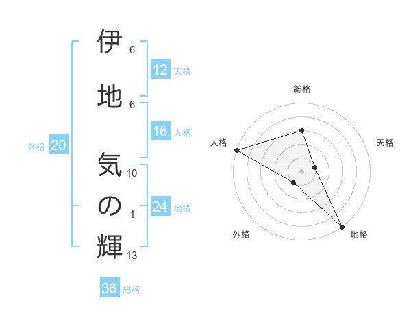 伊地 気の輝さんを姓名の画数から五運を鑑定