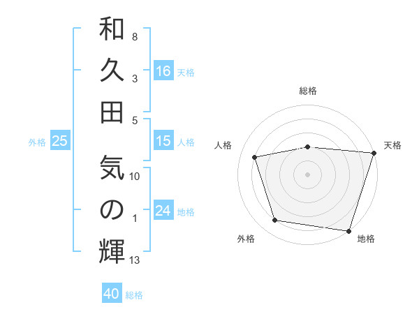 和久田 気の輝さんを姓名の画数から五運を鑑定