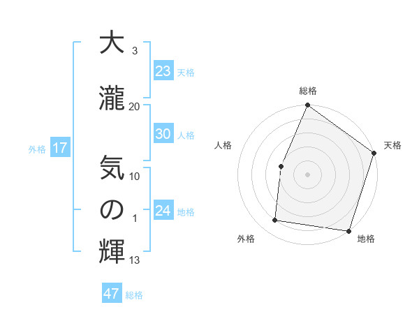 大瀧 気の輝さんを姓名の画数から五運を鑑定