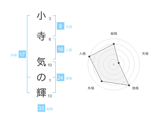 小寺 気の輝さんを姓名の画数から五運を鑑定