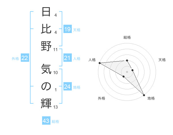 日比野 気の輝さんを姓名の画数から五運を鑑定