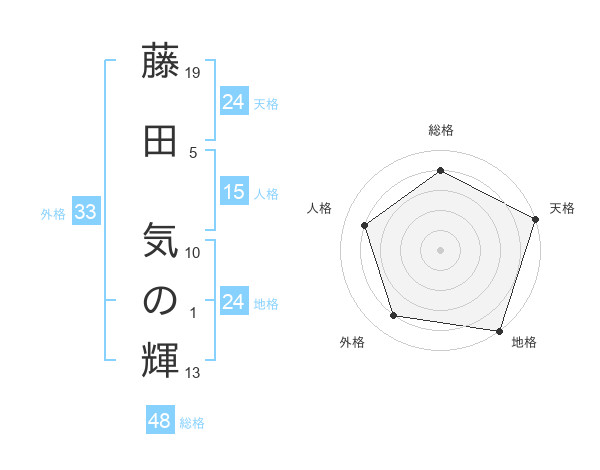 藤田 気の輝さんを姓名の画数から五運を鑑定