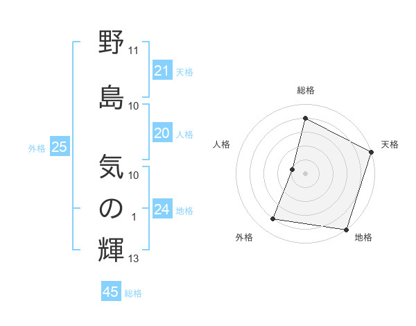 野島 気の輝さんの総格は45画の4点!