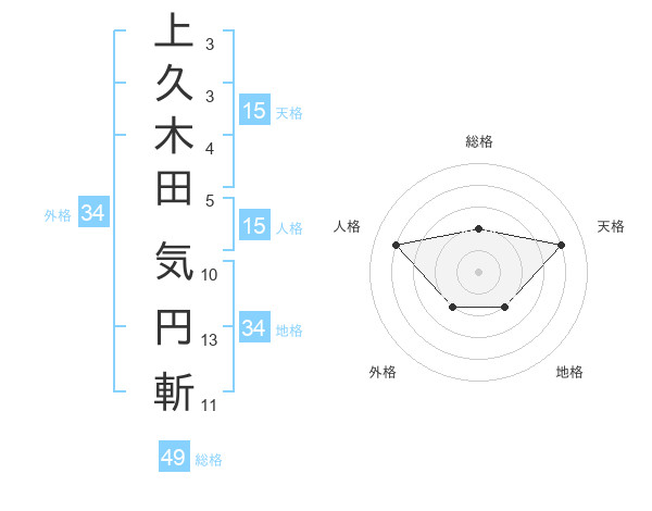 上久木田 気円斬さんを姓名の画数から五運を鑑定