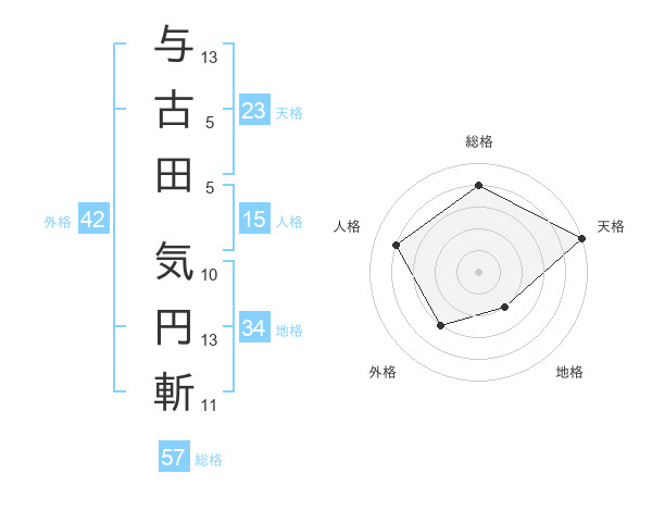 与古田 気円斬さんを姓名の画数から五運を鑑定