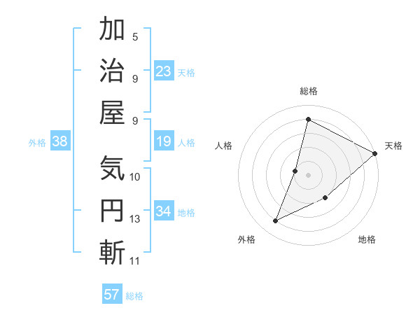 加治屋 気円斬さんを姓名の画数から五運を鑑定