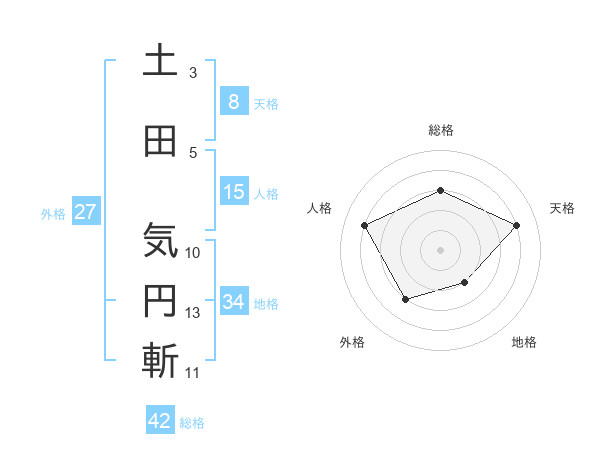 土田 気円斬さんを姓名の画数から五運を鑑定