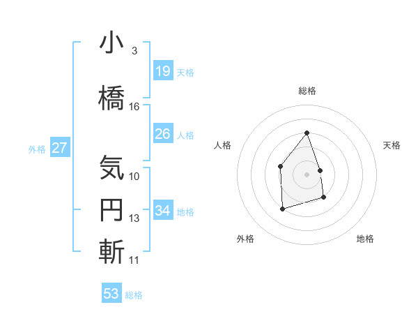 小橋 気円斬さんを姓名の画数から五運を鑑定