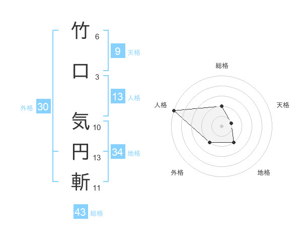 竹口 気円斬さんを姓名の画数から五運を鑑定
