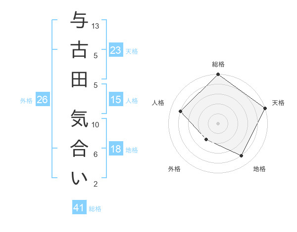 与古田 気合いさんを姓名の画数から五運を鑑定