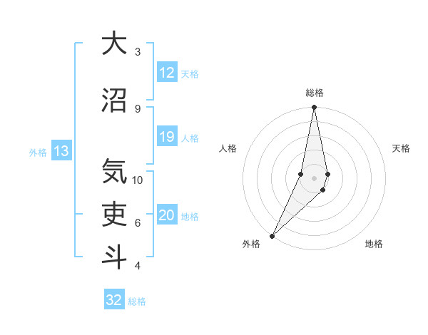 大沼 気吏斗さんを姓名の画数から五運を鑑定
