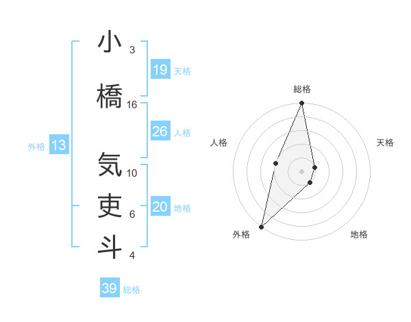 小橋 気吏斗さんを姓名の画数から五運を鑑定