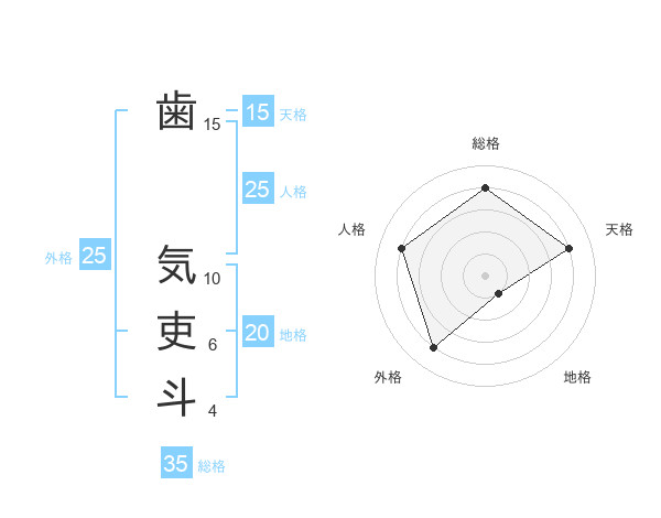 歯 気吏斗さんを姓名の画数から五運を鑑定