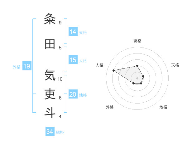 粂田 気吏斗さんを姓名の画数から五運を鑑定
