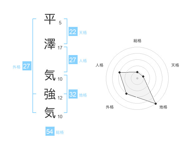 平澤 気強気さんの天格は22画の1点