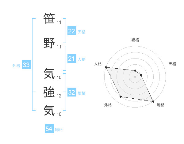 笹野 気強気さんを姓名の画数から五運を鑑定