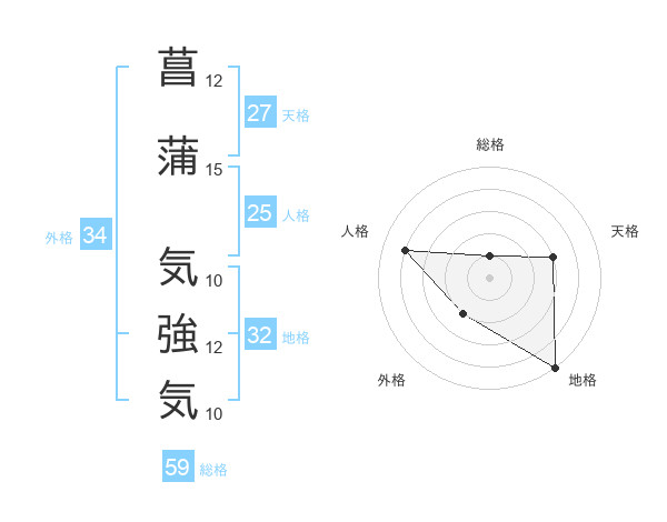 菖蒲 気強気さんの総格は59画の1点!