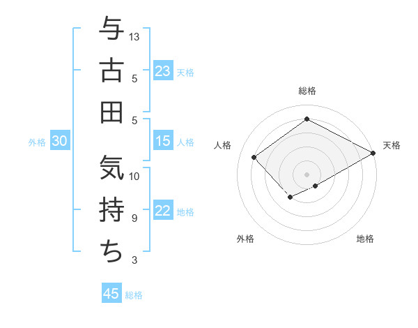 与古田 気持ちさんを姓名の画数から五運を鑑定