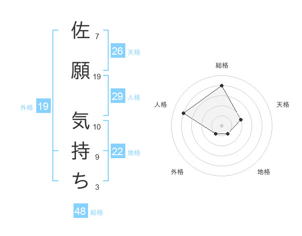 佐願 気持ちさんを姓名の画数から五運を鑑定