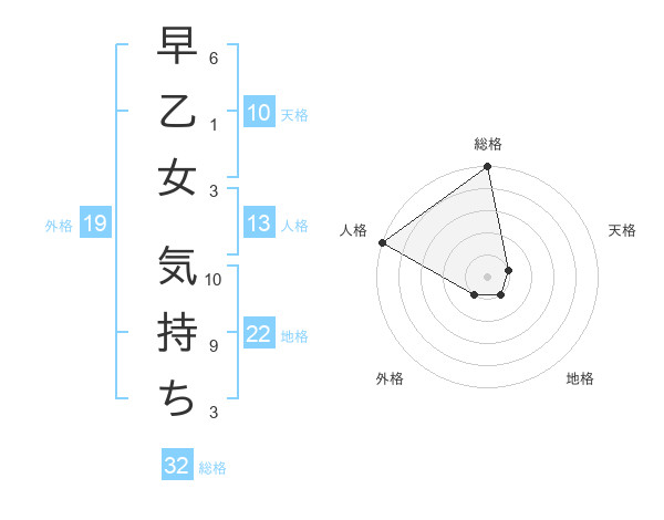 早乙女 気持ちさんの総格は32画の5点!