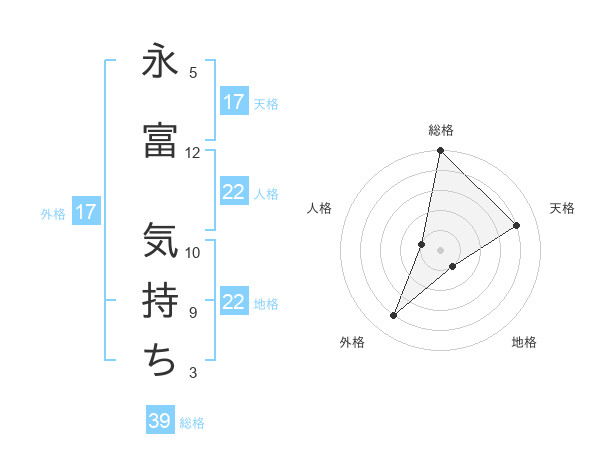 永富 気持ちさんを姓名の画数から五運を鑑定